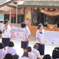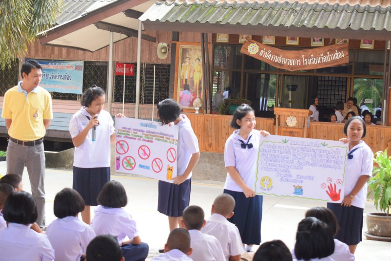 น้าเสาธง พร้อมอ่านสาร วันต่อต้านยาเสพติด และเสนอผลงานนักเรียนที่ช่ว