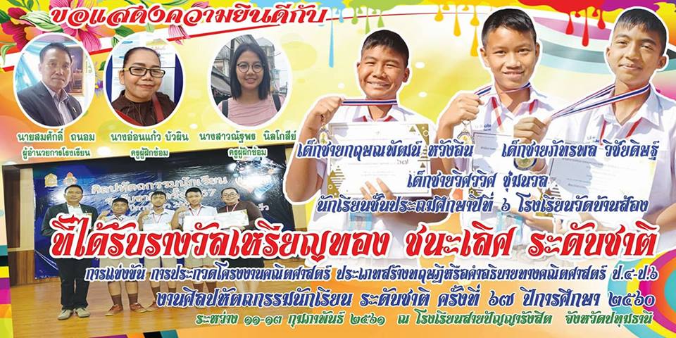 ผลการแข่งขันงานศิลปหัตถกรรมนักเรียนครั้งที่ 63 ระดับชาติ (การประกวดโครงงานคณิตศาสตร์ประเภท 1 ป.4-ป.6